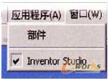 Inventer Studio功能被嵌入到Invensor中.用戶可以直接通過(guò)”應(yīng)用程序(A)”萊單選項(xiàng)進(jìn)入InventarStudio的環(huán)境(見(jiàn)圖1)卜并且可以根據(jù)設(shè)計(jì)過(guò)程中的需要在裝配、零件環(huán)境與Inventor Studio環(huán)境之間切換(在以后的討論中,將把Invemor Studio簡(jiǎn)稱(chēng)為IS)。