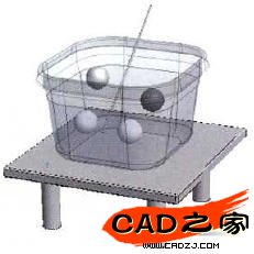 下面我們將通過對一組物體模型的渲染設置全過程來學習IS渲染功能的操作,圖4為這組物體模型,它由水杯、水、小球和小棍組合而成并擺在一張桌子上。