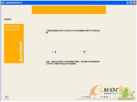 3、點擊“打開”,在彈出來的窗口內點擊“下一步”,彈出提示用戶操作的窗口,如圖(24)所示,系統默認選擇“否”。選擇“是”,然后點擊“下一步”,系統提示上述操作的一些相關信息,包括圖框、標題欄、略圖符號的數目等。點擊“開始”開始轉換,如圖(25)所示。