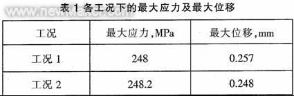 由于該零件結構本身和受力狀態不對稱,造成應力不對稱,若能在后續生產中適當增大定位銷圓孔處厚度以及將定位銷圓孔處切口改為圓弧形,應力還可進一步下降,效果會更好。