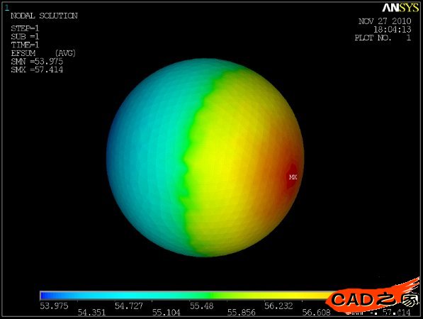 原先一直都是通過截面圖來間接顯示實體表面的場強分布,確定最大場強的位置。由于只可能做有限數量的截面,所以不能保證得到值就一定是最大場強。后來采用的一個權宜的方法是,選擇附著在實體表面的單元,然后用 plesol,ef,sum 來畫出單元上的場強分布。可是,實體表面的單元參差不齊,畫出的圖很不好看,而且最大場強出現位置也可能被附著的單元所遮擋。當時甚至還想到,是否可以在實體表面做一個平整的空氣薄層,然后再取出該薄層來畫場強分布。而這無疑會使計算量大大增加,因此也沒有采用。