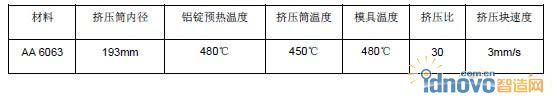 表1 擠壓工藝參數