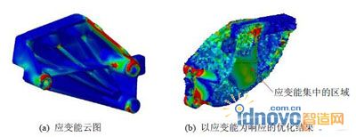 結合人工設計經驗,在圖9(b)所示設計基礎上添加加強筋,以應變能為響應進行次輪優化,結果如圖10所示。