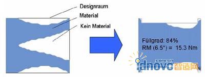 在鑄件的拓撲優化設計中的一個最重要特點就是要有拔模方向約束(圖3. )。這項重要的功能已經在BMBF的ELAnO項目中開發出來了,并且集成到了Tosca V4.5版本之中。采用這項功能之后,鑄件設計中可以避免底切和孔洞現象。#p#分頁標題#e#