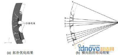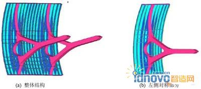其中,U和F為全局位移向量和力向量,K為全局剛度矩陣,即結構總剛度陣,ue和ke是單元位移矢量和單元剛度矩陣,設計變量xe為單元的偽密度,xmin是偽密度下限(不為零,以避免結構總剛度陣奇異),N為設計域內單元的個數,p是懲罰因子,φj為約束函數,如體積約束、位移約束、應力約束、屈曲約束和頻率約束等。J為約束函數個數。1.2 結構拓撲優化的實現本文采用有限元軟件HyperWorks的拓撲優化功能實現結構拓撲優化分析。