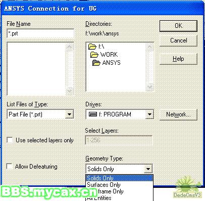 這些工作完成后就可以導入.prt文件了(File>Import>UG...)。出現一對話框如下,不用解釋了吧,大家一看就懂。
