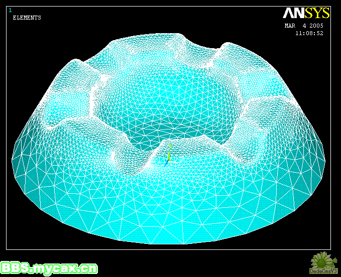 這是輸入后的結果,注意,這個結果看起來像是線模型,而非實體模型。其實ANSYS導入的模型就是這樣的。不信大家用畫線和畫實體命令試一下,看有何不同。大家還可以看看后面我的分網模型。