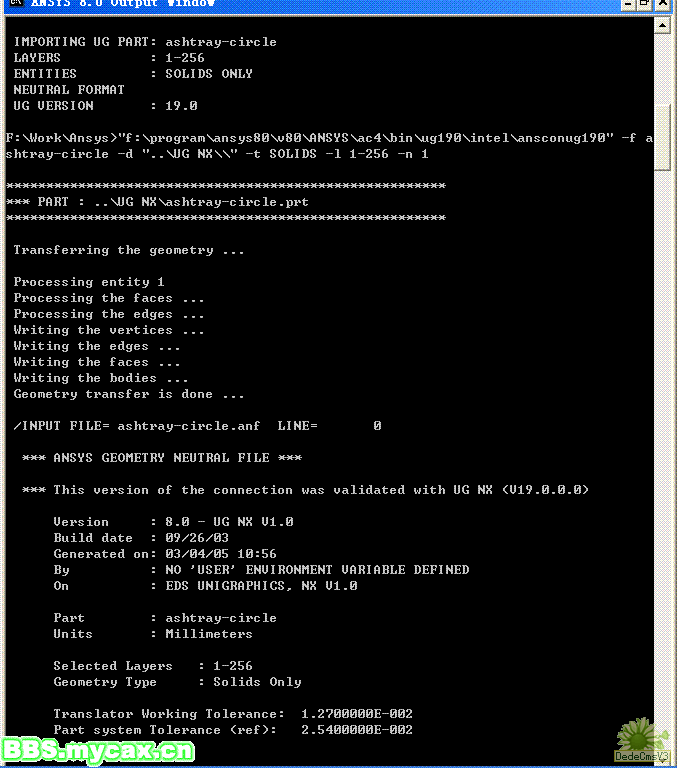 還要把UG可執行文件的目錄(UGII_ROOT_DIR的值)加入到系統路徑中,否則ANSYS在導入時會提示找不到UG的某些.dll文件而無法轉換。