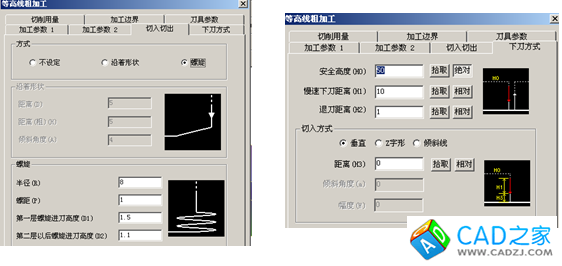 圖-12螺旋下刀參數(shù) 圖-13下刀方式