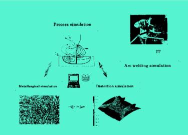 2000年日本大阪大學接合科學研究所提出了一個計劃五年完成耗資20億日元(2千萬美元)的國家課題[1]:“高效與安全焊接技術的開發”,事實上它包含著一個焊接虛擬工程的研究。其目的是開發一個用戶界面友好的高效與安全焊接的計算機系統。它同時給出三個精密模擬程序,即焊接過程模擬程序、被焊區域組織預測程序和變形預測程序(圖1)。其中各個模擬程序的目標為:(1)焊接過程模擬程序包含一個電弧等離子模型,要求無須局部熱動力學平衡的假定,焊接熔池尺寸的預測精度達到±10%。(2)被焊區域組織預測程序包含一個針狀鐵素體的形成模型,要求鐵素體、針狀鐵素體成分和室溫強度的預測分別在±5%、±10%和±50Mpa以內。(3)焊接變形程序包括面外變形預測精度在±15%以內。為了開發上述模擬程序,尚需進行一系列精密的實驗驗證,包括物理性能的測定,如等離子環境下熔池的表面張力、固態和熔池的熱導率等。