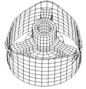在壓縮機圓筒上部筒壁沿圓周均勻開了3個8mm的孔,然后用鎢極氬弧焊同時進行塞焊,把圓筒和軸承連接起來。主要分析圓筒與上部軸承焊接引起的偏心和圓筒端部形狀的變化。圖3為焊后壓縮機計算模型的殘余變形圖,圓筒端部徑向變形猶如“花狀”。采用該計算模型曾研究了焊接熱輸入、裝配間隙、3條焊縫焊接的時間差異、塞焊孔位置高低偏差以及夾具等對焊后偏心和“花狀”變形的影響。模擬計算結果與實測數據相當吻合。通過計算還可以獲得整個結構的殘余應力分布,最大主應力出現在塞焊點周圍的熱影響區,數值可達材料的屈服應力。