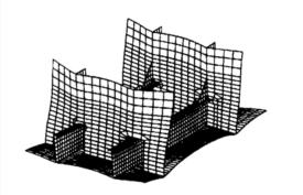 采用板殼單元固有應變有限元法進行了分析。圖12為車廂結構中一鋁合金π-截面板。圖13和圖14分別為預測所得焊接失穩變形的兩種不同形式(扭轉型和馬鞍型)。它們與π-截面形狀尺寸有關。從能量觀點來看,扭轉型比馬鞍型要可取些。