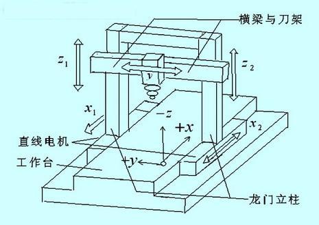 圖1直線電機驅動的龍門移動式鏜銑床結構
