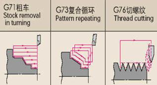 復合加工循環可用簡單指令生成一系列的切削路徑。比如定義了工件的最終輪廓,可以自動生成多次粗車的刀具路徑,簡化了車床編程。