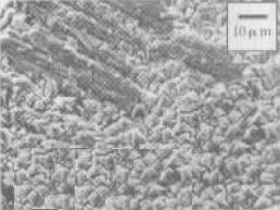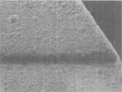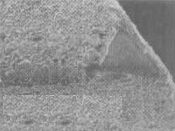 - 另外,普通金剛石薄膜的結晶粗大、表面凹凸不平,在干切削鋁合金時,涂有這種金剛石薄膜的刀具在晶粒與晶粒間的凹部很容易產生粘著,從而降低被加工材料的加工精度和表面粗糙度(圖5所示是發生這種粘著現象的實例)。而超微細結晶金剛石薄膜表面粗糙度在Ry1µm以下,切削試驗中觀察不到有粘著現象發生。