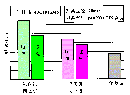 圖3 球頭鐵刀不同銑削方式對耐用度的影響
