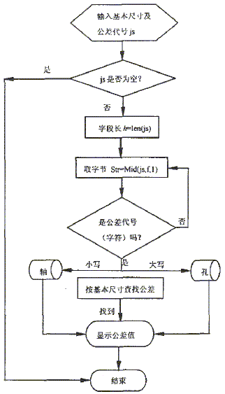 公差查詢摸塊的入口參數(shù)有三個—一基本尺寸、公差代號、公差等級。查詢的結果由查詢模塊出口參數(shù)-基本尺寸、公差代號、上偏差和下偏差表示。下面是部分代碼:
