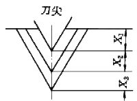 圖4 G76斜進式加工- 從以上對比可以看出,只簡單利用一個指令進行車削螺紋是不夠完善的,采用G92、G76混用進行編程,即先用G76進行螺紋粗加工,再用G92進精加工的方式在薄壁螺紋加工中將有兩大優點:一方面可以避免因切削量大而產生的薄壁變形;另一方面能夠保證螺紋加工的精度。