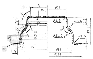 式中 Li——旋轉(zhuǎn)拉延件中性層各線段(直線和圓弧)長(zhǎng)度