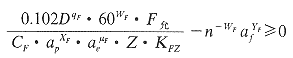 其中,F允為銑刀最大允許水平切削力;D為銑削余量;N允為機(jī)床允許功率;- 其余符號表示的意義和《切削用量手冊》中的相同。