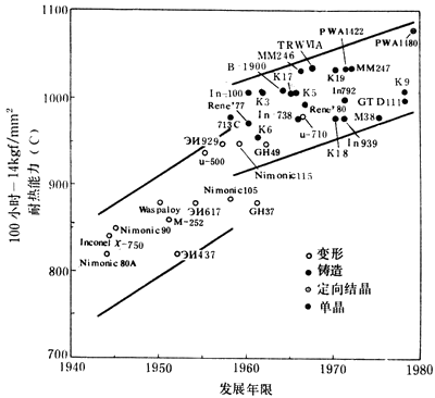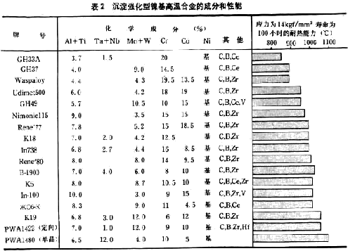 - 通常綜合采用固溶強化、沉淀強化和晶界強化三種強化方式,因而具有良好的高溫蠕變強度、抗疲勞性能、抗氧化和抗熱腐蝕性能,可用于制作高溫下承受應(yīng)力較高(每平方毫米十幾公斤力以上,見表2) 的部件,如燃氣輪機的渦輪葉片、渦輪盤等(圖2)。