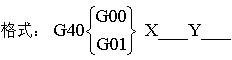 指令中有x、y值時,表示編程軌跡上取消刀補點的坐標值。無x、y值時,則刀具中心點將沿舊矢量的相反方向運動到指定點。