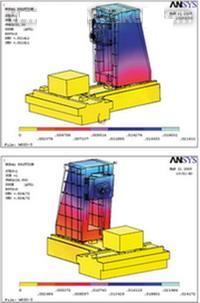 由于立柱要在機床上進行Z向的運動,在高剛性的同時,還應(yīng)具有高速度的特性,因此立柱的設(shè)計除了保證高剛度,還采用了輕型設(shè)計的原則,降低了移動部件的重量,為機床高速性的實現(xiàn)奠定了基礎(chǔ)。