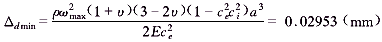 根據式(16),要滿足電主軸的高速性能,電機轉子與主軸配合面間的動態過盈分量的最小值Δdmin可由下式求得: