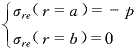 電機轉子內孔受正壓力p作用,外圓面為自由面,如圖1a所示。因此邊界條件為: