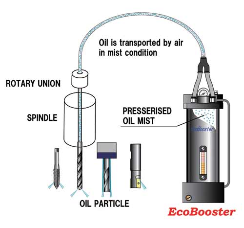 與鑄鐵或鑄鋼和磨削相比,干式切削使刀具使用壽命增加了20%,某些使用MQL的刀具使用壽命實驗表明刀具壽命增長了50%,具體取決于加工過程,切削速度和進給。這是因為MQL系統將產生由微小油滴構成的油霧,它通過刀具中心噴射到切削區域上,使切屑更易清除,并且防止微粒黏在切削刀具上。