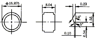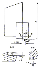 - SANDVIK外圓車刀的幾何參數如圖9所示。安裝該刀具的刀座刀窩無傾斜角,其工作角度為(見圖7):工作前角goe=18°,工作后角aoe=7°,負倒棱寬度bre=0.15mm;IC=16mm,S=6.35mm,Rn=-15°。