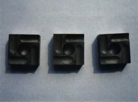 圖6 涂CxNy薄膜的YT14硬質(zhì)合金刀片- 從圖4、圖5可以看出,YG8和YT14兩類硬質(zhì)合金刀片經(jīng)涂覆CxNy薄膜后,刀具壽命大為提高。但在車削淬硬鋼T12A時(shí),CxNy涂層刀片的使用壽命低于PCBN刀片。在車削高強(qiáng)度中硬鋼602Mn時(shí),CxNy涂層刀片的使用壽命略高于YBo2(TiC涂層)刀片。