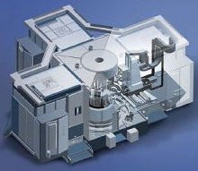 轎車上的許多零件,如轉(zhuǎn)盤軸承、車輪架等,當(dāng)時(shí)都是鋁制的,而不是鋼鍛件或鑄件。同時(shí)還注意到,新車型中越來越多的零件必須進(jìn)行空間角度加工。這樣,經(jīng)常要求多種裝夾定位以完成全部加工。多次夾緊定位不僅影響零件加工過程的可靠性,還提高了制造成本。降低加工成本的另一種觀點(diǎn)就是應(yīng)用微量潤滑劑的干式加工。鑒于所有這些原因,促使開發(fā)了一種新的,特別是用微量潤滑的五軸干式加工機(jī)床。Licon mt公司的Liflex系列的“RTM4MQL686LTC6”機(jī)床(如圖)就是一次裝夾完成輪架的全部加工,這個(gè)輪架由鋁硅錳合金(AlSi7Mg03)制成。
