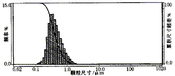 T(iC/N)粉料采用德國H.C.Starck公司產(chǎn)品,C/N=7:3,平均粒徑為0.59µm,其粒度分布如圖2所示。