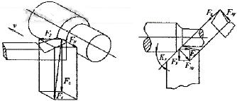 車刀在切削時,由于對工件的切深和走刀運動的作用,刀片上承受水平方向的軸向推力Fx、切深推力Fy和主切削力Fz,此3個力能將刀片緊壓在刀桿刀槽的底面上,使刀具正常切削其車削時的合力及分力分析如圖3所示,這一般稱之為利用切削力夾緊的原理。