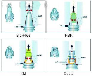 工具主軸可以對應Big Plus、HSK、KM、CAPTO這4種不同的刀桿形式(圖5),這樣就給用戶更多的自由度來選擇不同的刀具。
