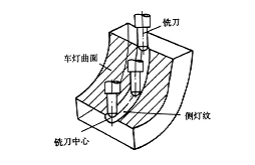 側燈紋的分布一般符合一定的規律, 因此銑刀中心運動軌跡所在的平面也按照某個準則。絕大多數情況下, 銑刀中心運動軌跡所在的所有平面都平行于脫模線,從而確保側燈紋不產生倒脫模現象。