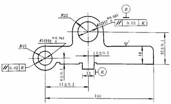 解:第一道工序劃線。當毛坯誤差較大時,采用劃線的方法能同時兼顧到幾個不加工面對加工面的位置要求。選擇不加工面R22㎜外圓和R15㎜外圓為粗基準,同時兼顧不加工的上平面與底面距離18㎜的要求,劃出底面和凸臺的加工線。
