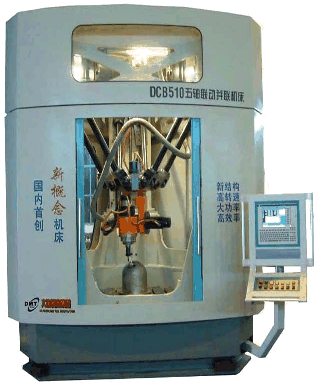 目前,國內外有許多公司和研究單位在研究虛擬軸機床。我國的并聯機床研究起步較晚,但成果顯著。其中清華大學是國內最早開始進行虛擬軸機床研究的單位之一,對虛擬軸機床以及多個相關領域進行了深入研究,并于1997年12月25日與天津大學合作,共同開發(fā)出我國第一臺大型鏜銑類虛擬軸機床原型樣機-VAMT1Y。在虛擬軸機床設計理論與樣機建造等關鍵技術方面達到了國際先進水平,其中部分理論成果屬國際首創(chuàng)。目前正在進行虛擬軸機床系列化、實用化的研究,與多家機床骨干廠家進行了新型虛擬軸機床商品化樣機的研制工作,以期實現虛擬軸機床的產業(yè)化。其中與昆明機床股份有限公司、江東機床廠和大連機床廠聯合研制的三種不同構型的機床已經問世,并與2001年在CIMT上展出,有望在近期實現商品化。與昆明機床股份有限公司共同研制的XNZ63虛擬軸機床,可實現多坐標聯動數控加工、裝配和測量多種功能,更能滿足復雜特種零件的加工,其綜合指標達到了國際先進水平。與江東機床廠聯合開發(fā)的一臺龍門式虛擬軸機床,結構采用雙柱龍門工作臺移動式,可完成4坐標聯動。與大連機床廠聯合研制的DCB-510五軸聯動串并聯機床,能夠通過并聯機構實現X、Y和Z方向的移動,采用傳統(tǒng)的串聯方式實現主軸頭的A和C方向的轉動。另外由天津大學設計并與天津市第一機床廠聯合研制的并聯機床也獲得成功并達到實用化水平。