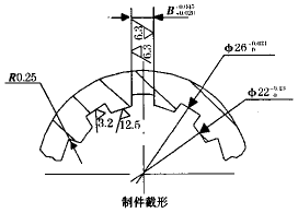 采用直邊花鍵拉刀加工汽車轉向軸的萬向節(jié)滑動叉花鍵(工件截形見圖1)時,常常出現(xiàn)切削熱過大、積屑瘤殘留嚴重、燒刀等現(xiàn)象,且刀具稍有磨損,切削力即急劇增大,使刀具拉斷,嚴重影響正常生產。為解決這一問題,我們對直邊花鍵拉刀進行了分析及改進。