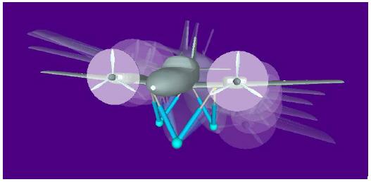 六足平臺的機械部分是由SimulationX 的3D 力學庫的元件組成,如1D/3D 轉換接口元件(形如液壓缸),球體和 一個通過SimulationX 的外部CAD 模型輸入接口輸入的復雜Cessna 飛機3D 模型。該接口可以自動計算飛機模型的質心和慣性張量,1D/3D 轉換接口元件的1D 邊連接從控制器來的控制力。