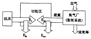- 若我們從資源的綜合利用的角度出發(fā),把制造廠建在氧氣廠附近,直接利用氧氣廠的廢液——液氮作為低溫加工系統(tǒng)的低溫源,而液氫、液氧等輸出供他用,形成資源綜合優(yōu)化利用系統(tǒng),最大限度的提高資源綜合利用率。另外還省去切削液供應(yīng)及回收,減少了資源消耗,降低了低溫加工的成本,提高其經(jīng)濟可行性。如圖4所示。圖中 Ec#p#分頁標題#e#——切削時變換為熱能的能量;