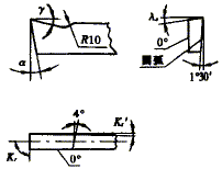圖3 副切刀幾何角度- 綜合考慮各種因素選用高速鋼(W18Cr4V)。