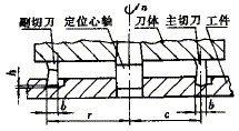 - 綜合考慮刀具切削過(guò)程中的排屑、切削力、夾刀、耐用度等因素,刀具設(shè)計(jì)成主切刀和副切刀兩種形式,根據(jù)各自不同的作用和要求選擇不同的刀刃形狀和幾何角度。