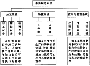 典型的FMS一般由三個子系統組成。它們是加工系統、物流系統和控制與管理系統,各子系統的構成框圖及功能特征如圖所示。三個子系統的有機結合,構成了一個制造系統的能量流(通過制造工藝改變工件的形狀和尺寸)、物料流(主要指工件流和刀具流)和信息流(制造過程的信息和數據處理)。