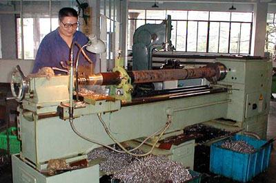 ⑥注意:車削細長軸(桿)時,應使用活頂尖和尼龍作跟刀架和中心架的爪托;鉸孔時,應用蓖麻油60%+煤油40%作切削液;攻絲時,適當加大底孔直徑。