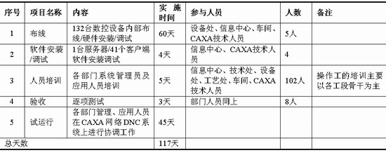 該企業的CAXA網絡DNC的方案的實施過程,歷時117天,具體日程如表2所示。