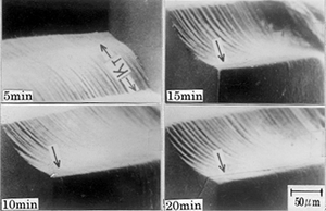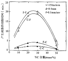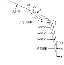- 用TiC含量多的粗粒度Al2O3-TiC陶瓷刀具切削高硬度鋼時,容易產生粘結磨損,月牙洼磨損寬度增大;當處于壓縮粘附狀態的粘附物移動時,月牙洼表面因受拉力作用而導致抗剝落性能下降。