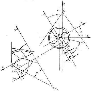 - 坐標系的建立如《麻花鉆后角的計算與研究》中的圖1所示。
