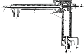 5-由氣流輸送的粉末 6-冷卻水 7-氧氣 8-燃氣